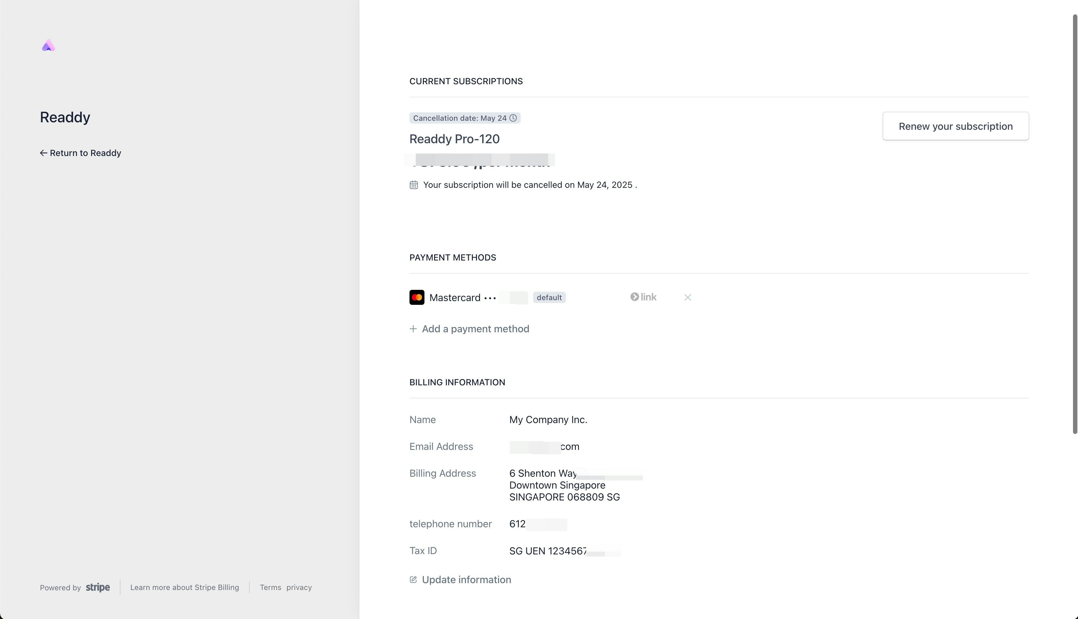 To continue, please go to the Subscription page and choose a plan that fits your needs — you’ll find all available options displayed as shown in the screenshot below.