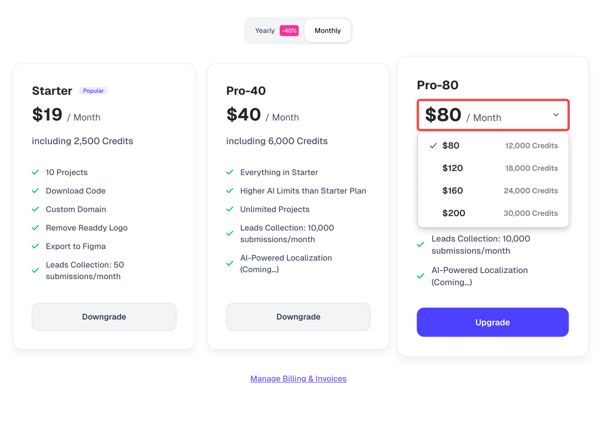 If you’re on our Starter Plan, you can upgrade to the Pro Plan for immediate access to more credits.