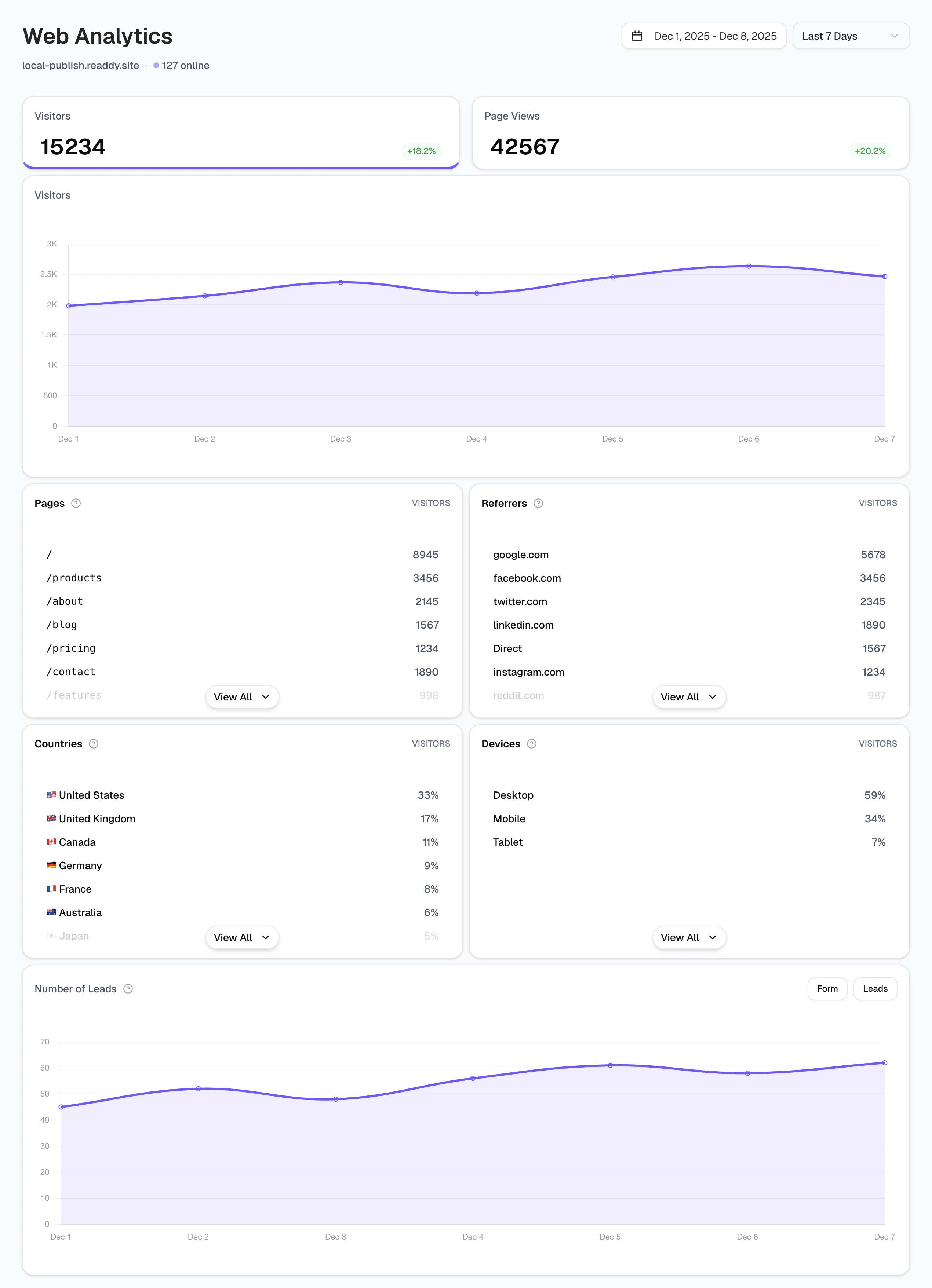 - Conversion Tracking: Track leads from Readdy Agent and forms to monitor your website’s conversion performance.