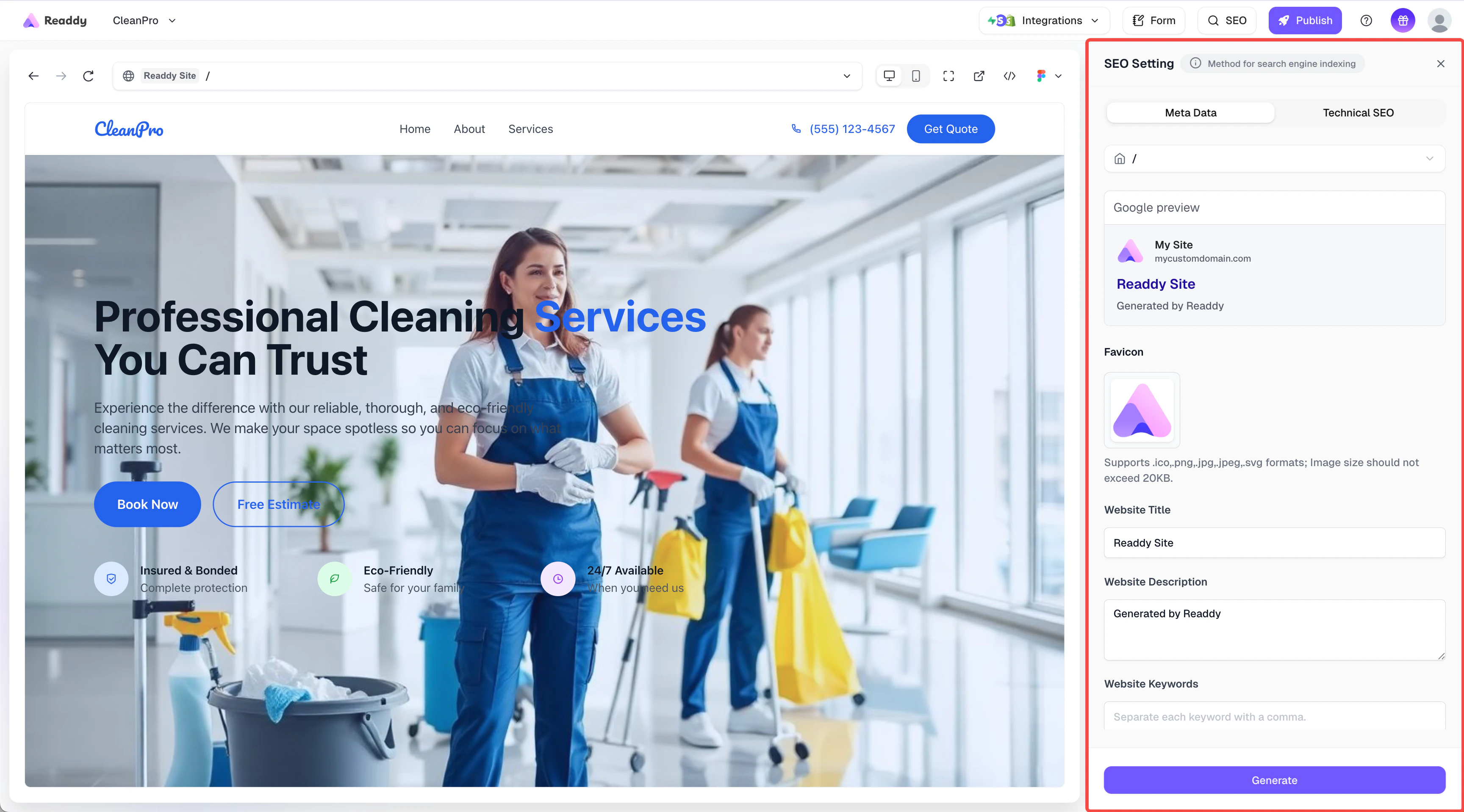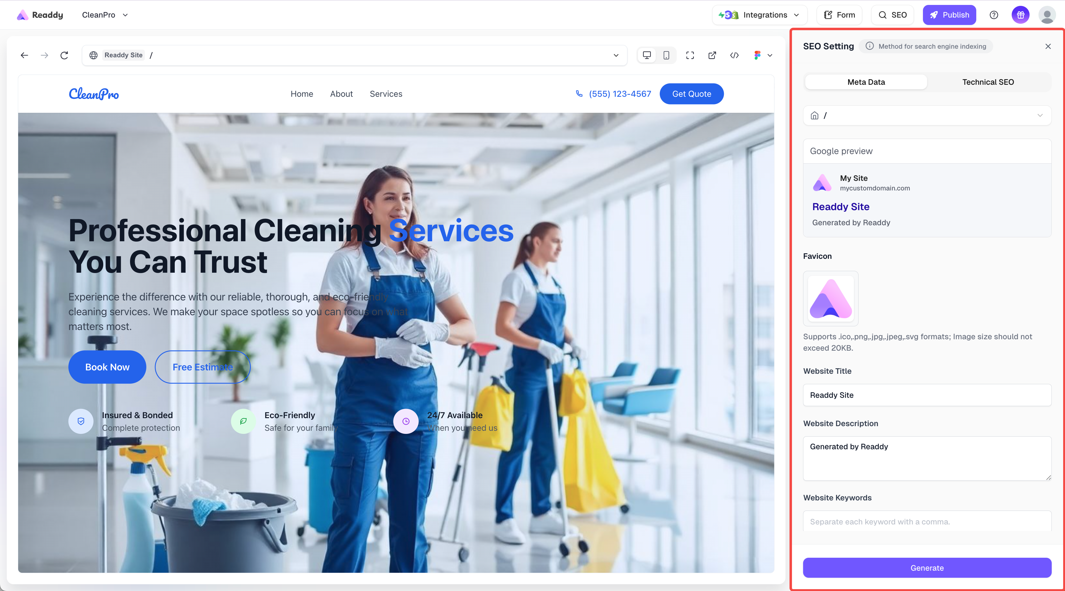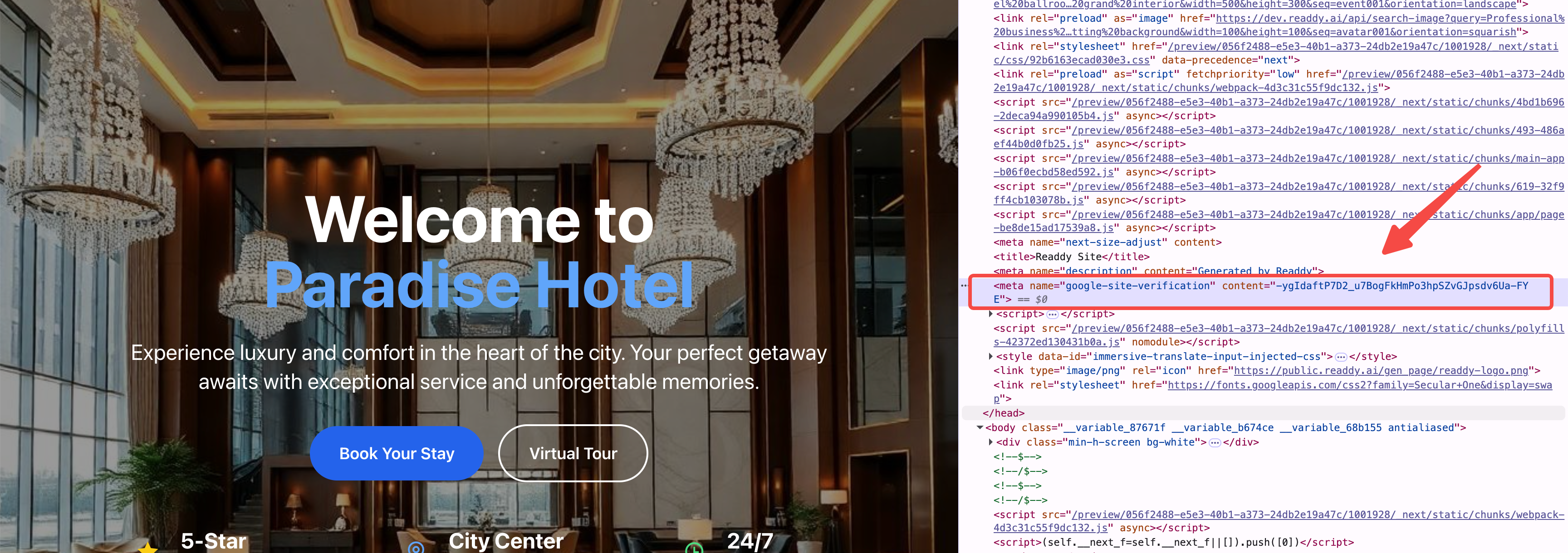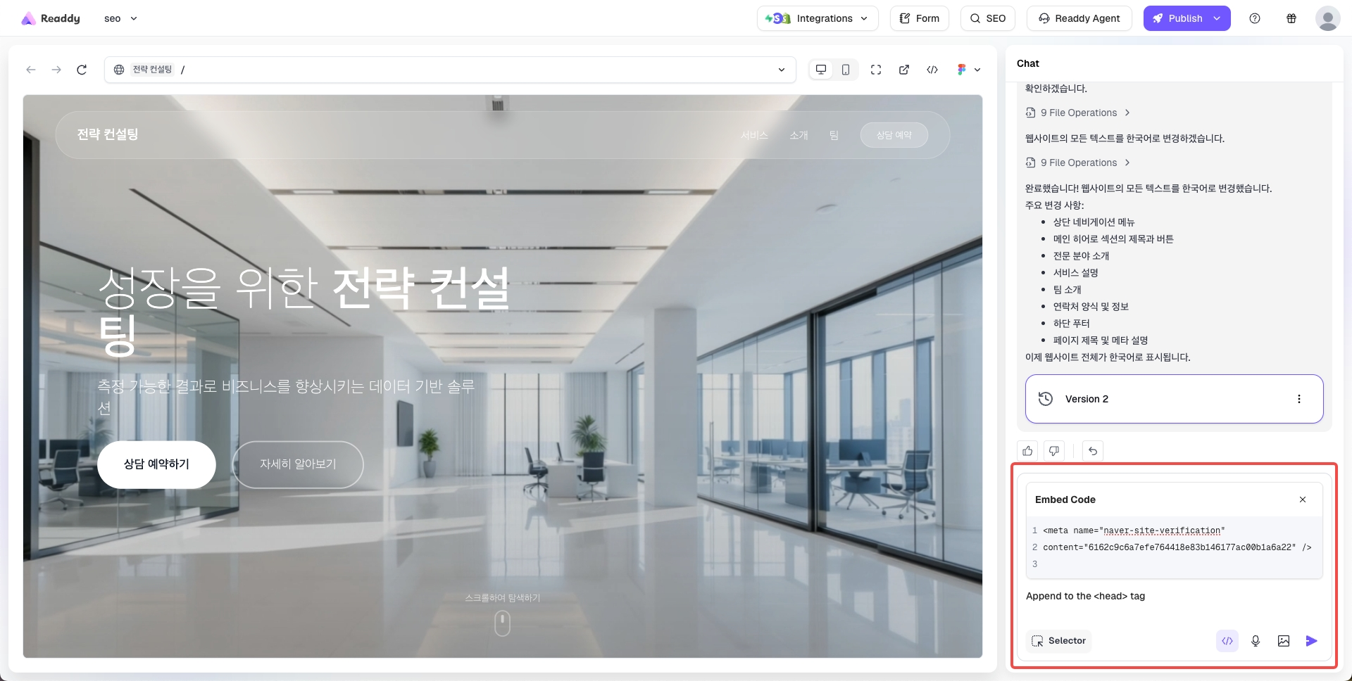 - Readdy will help you generate a new version of your website, This version includes Google’s site verification code.