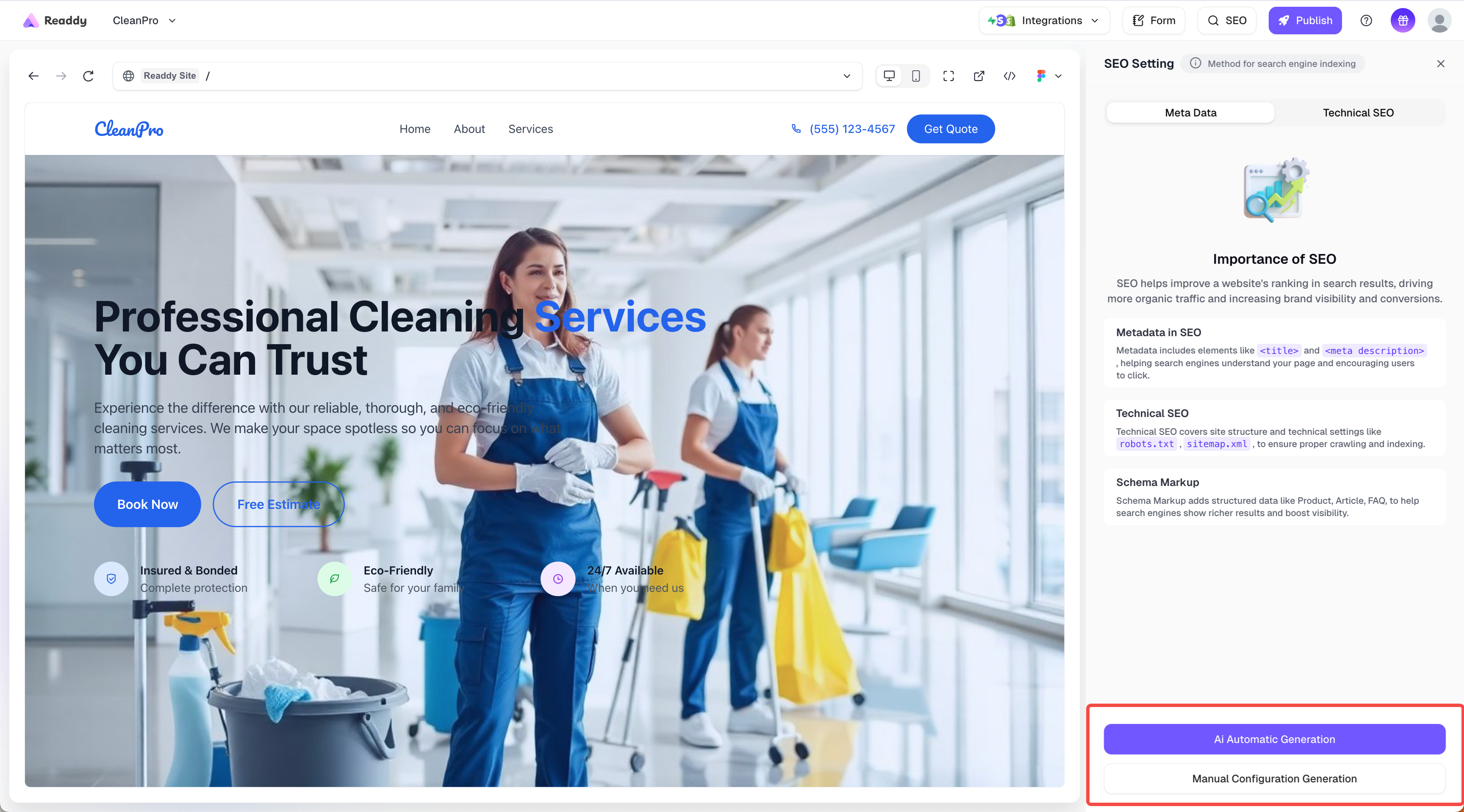 - AI auto‑generation: The system automatically optimizes page SEO information. Best for quick setup.