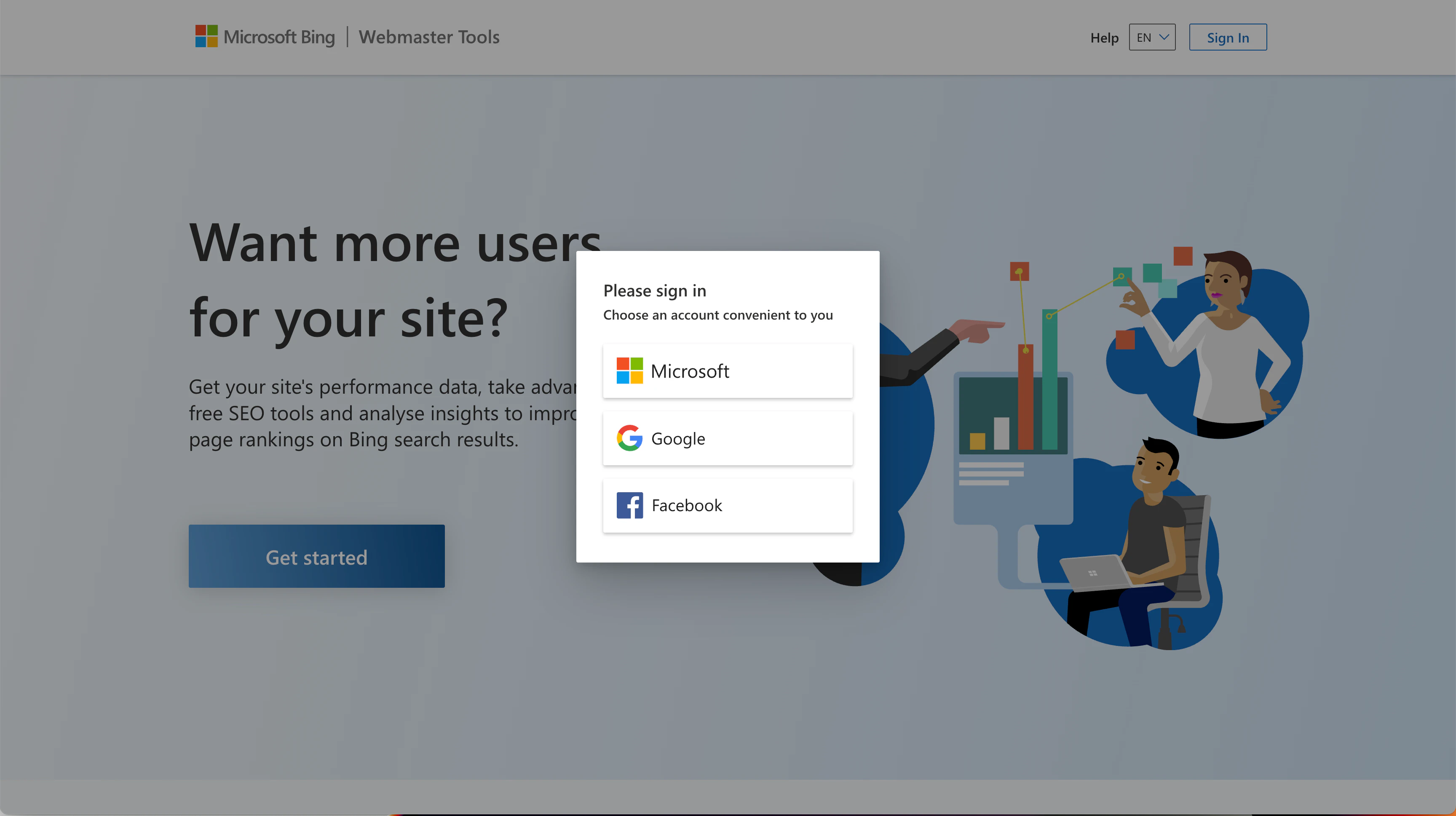 https://www.bing.com/webmasters) and log in with your Microsoft account.