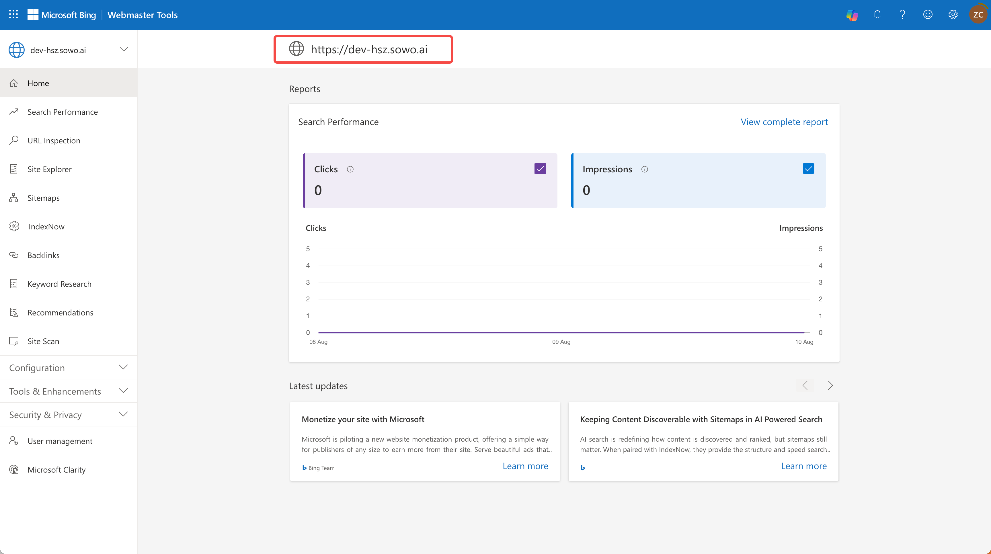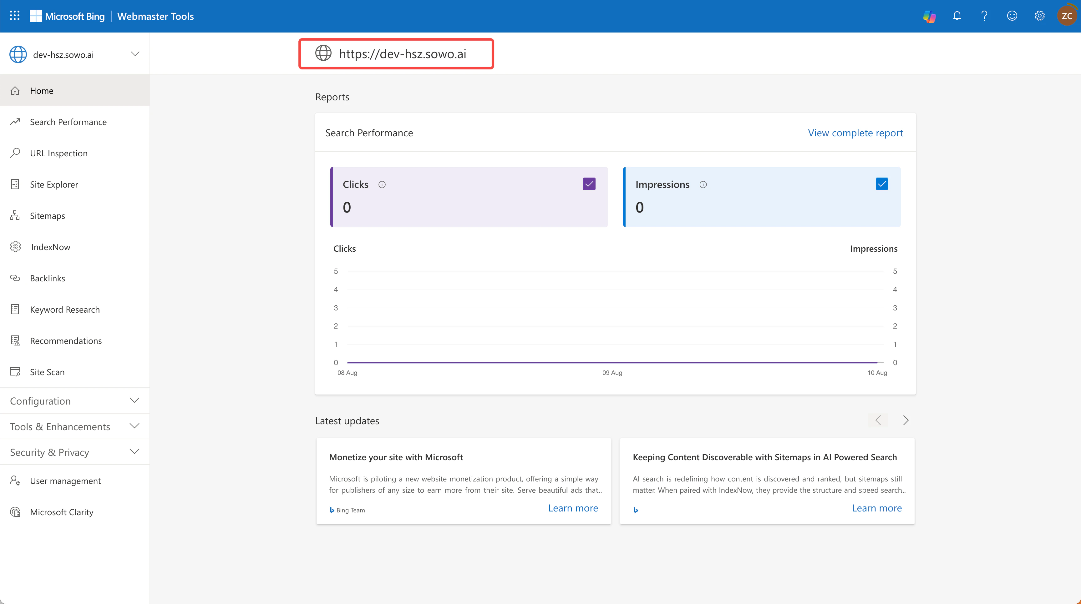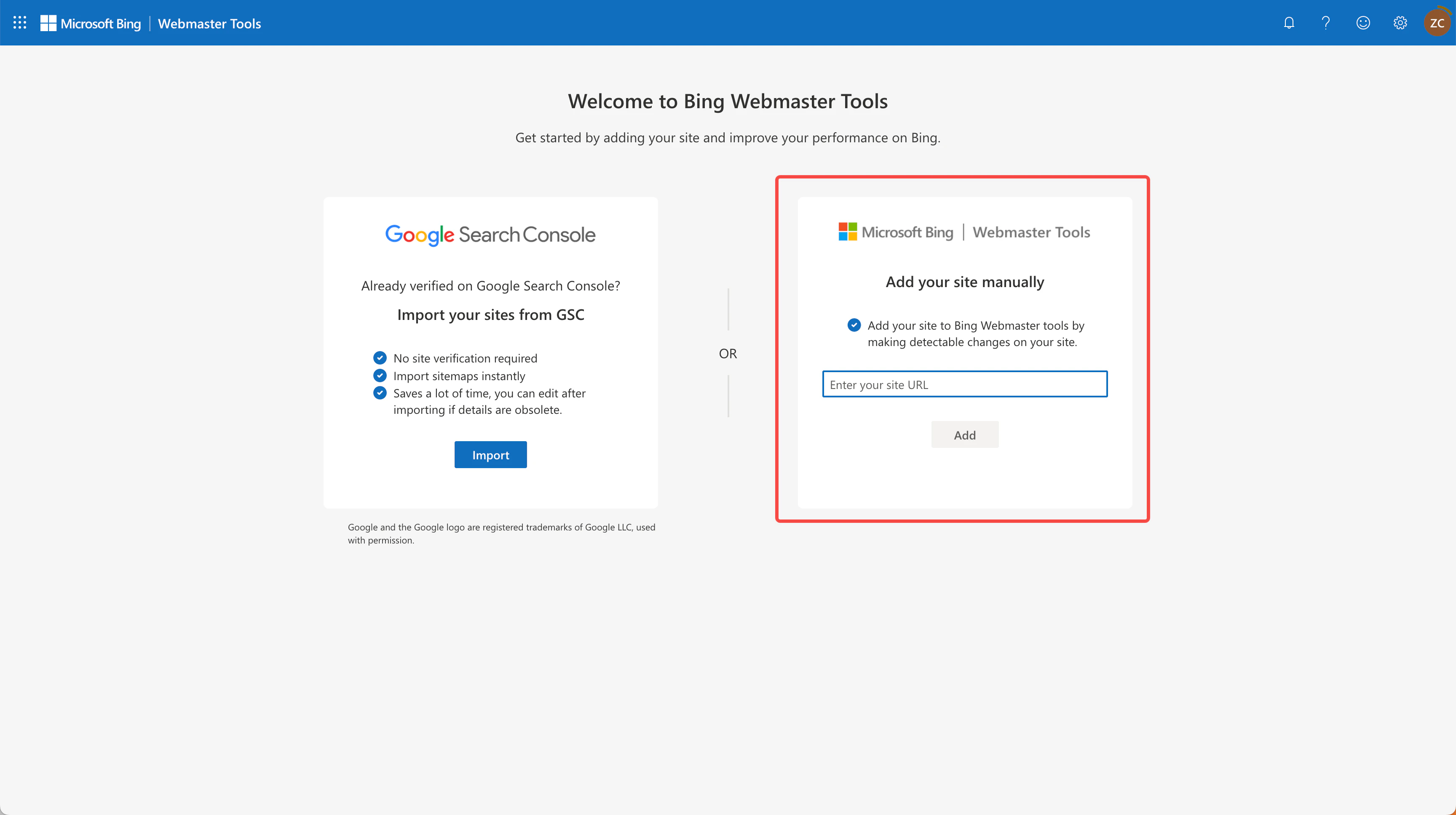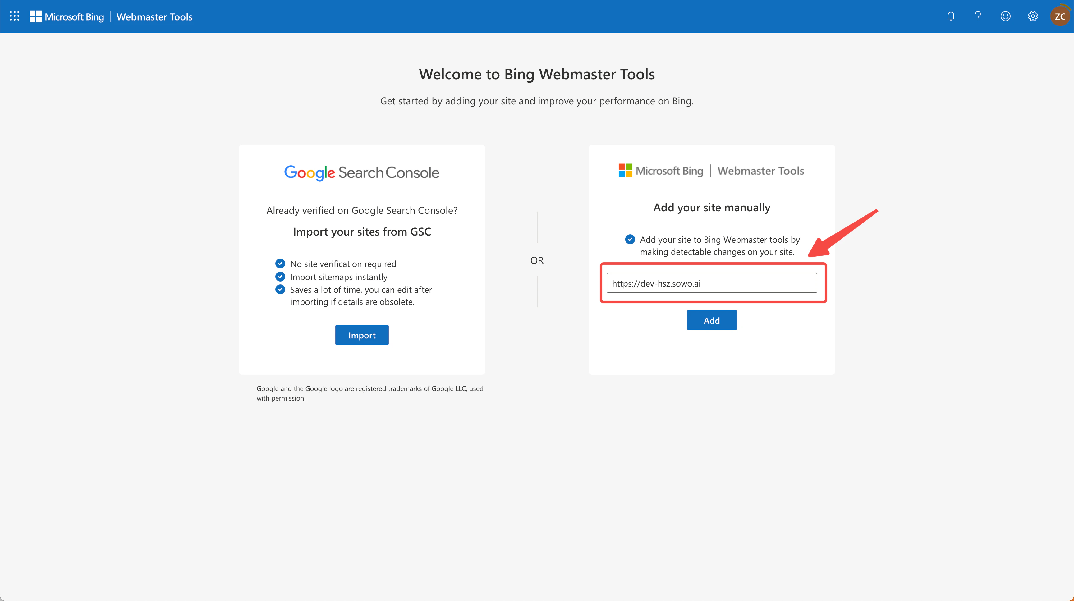 Connect to Bing Webmaster Tools