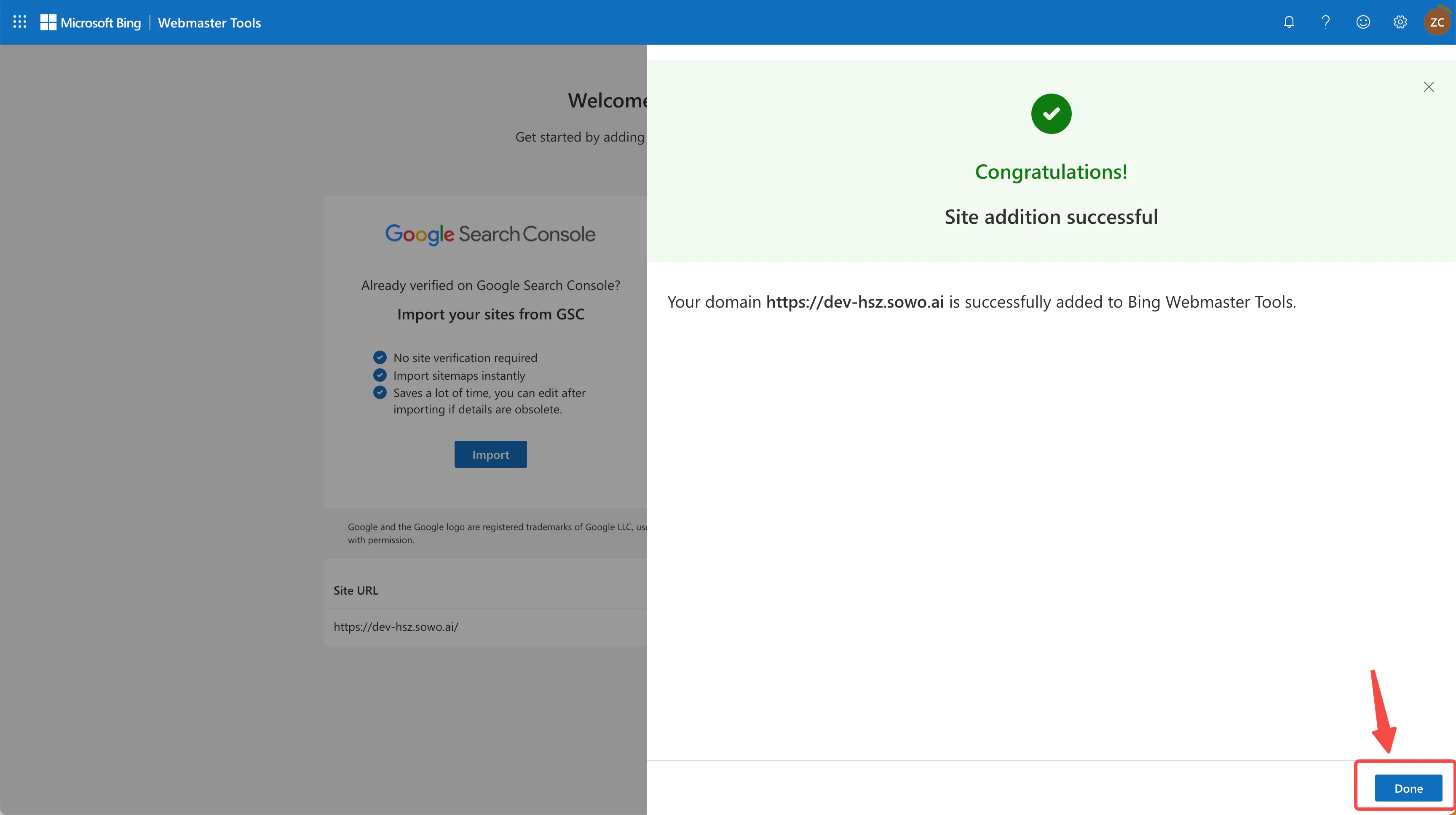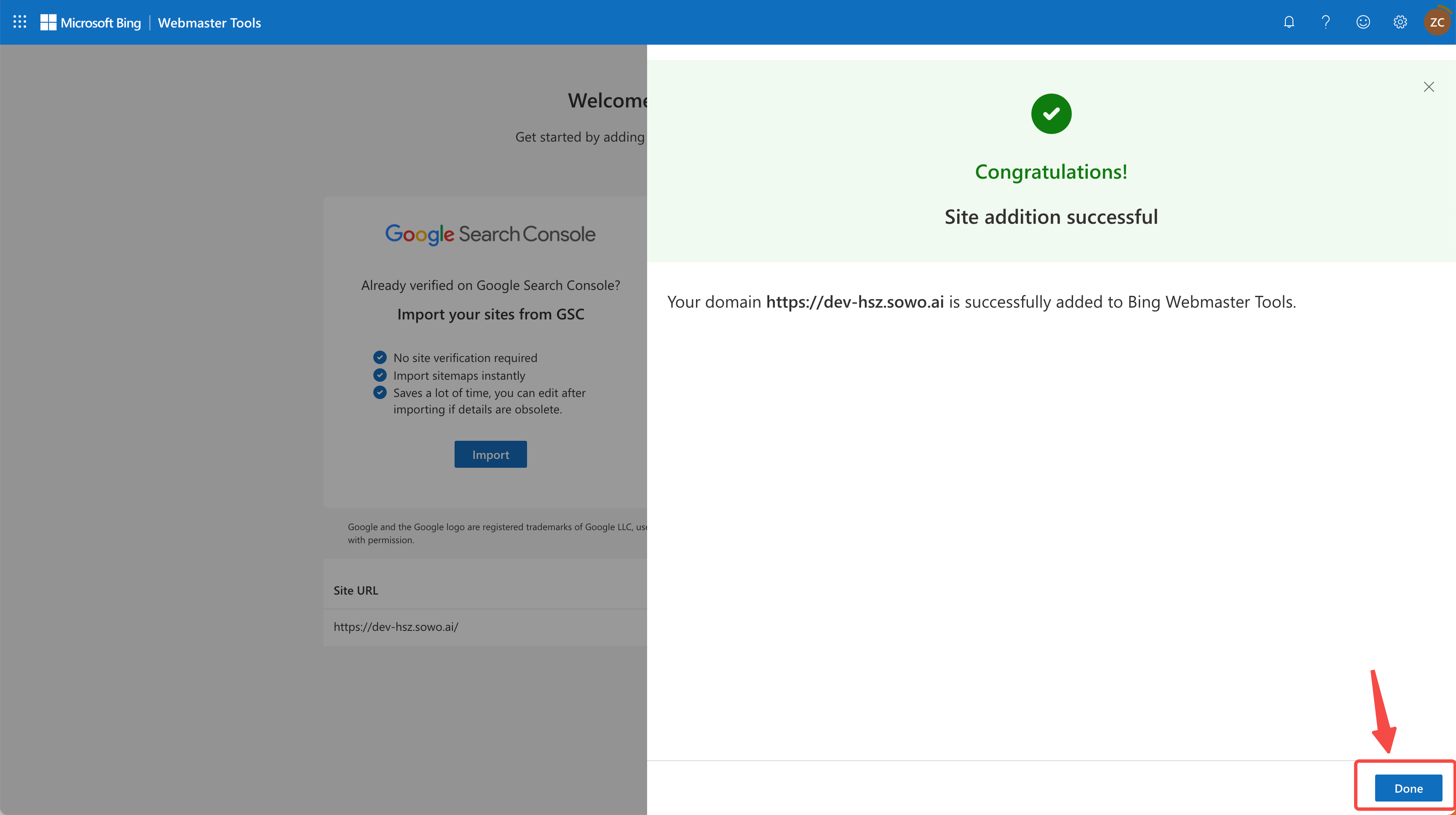 - Return to Bing Webmaster Tools
