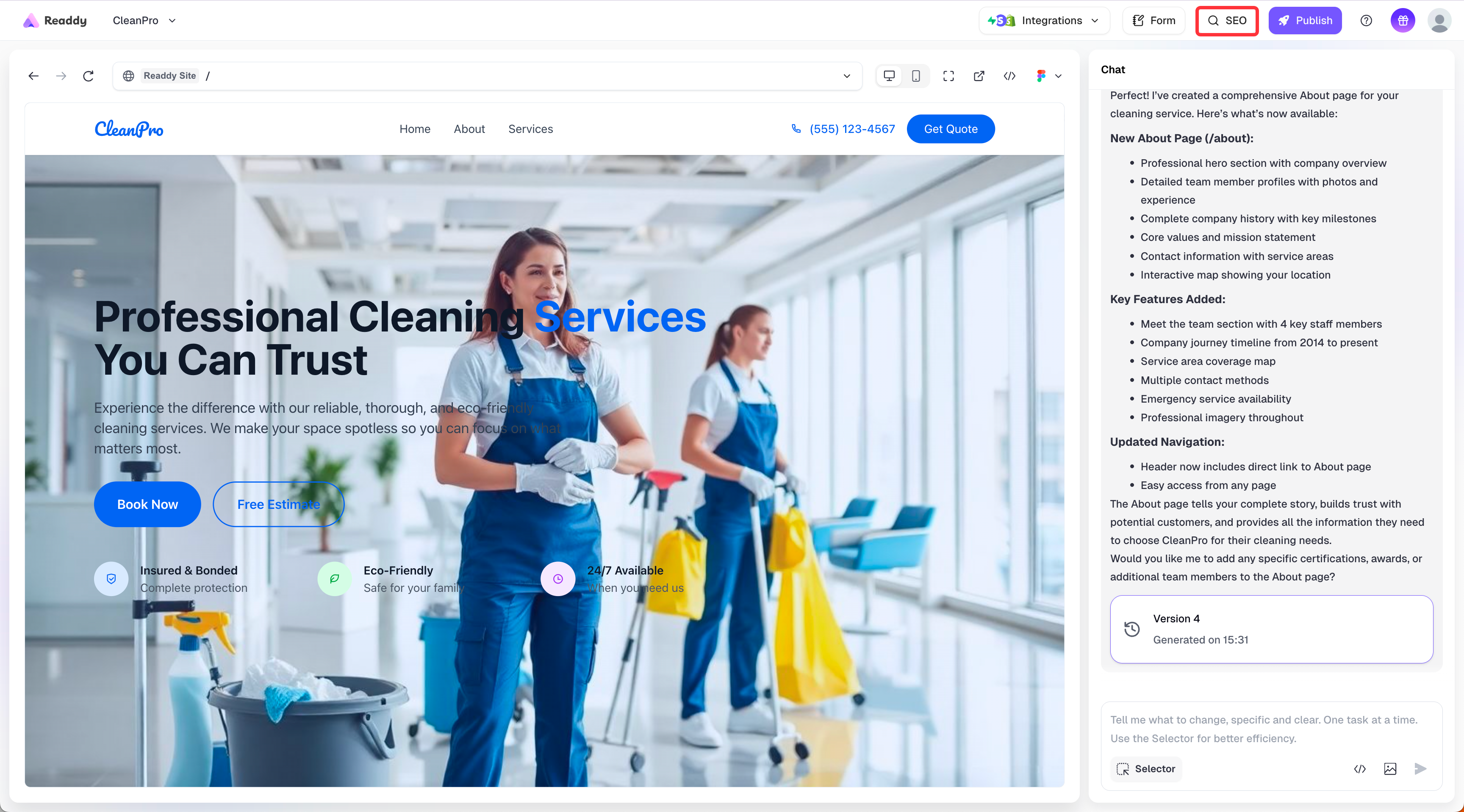 - Readdy will help you generate a new website version containing the verification code
