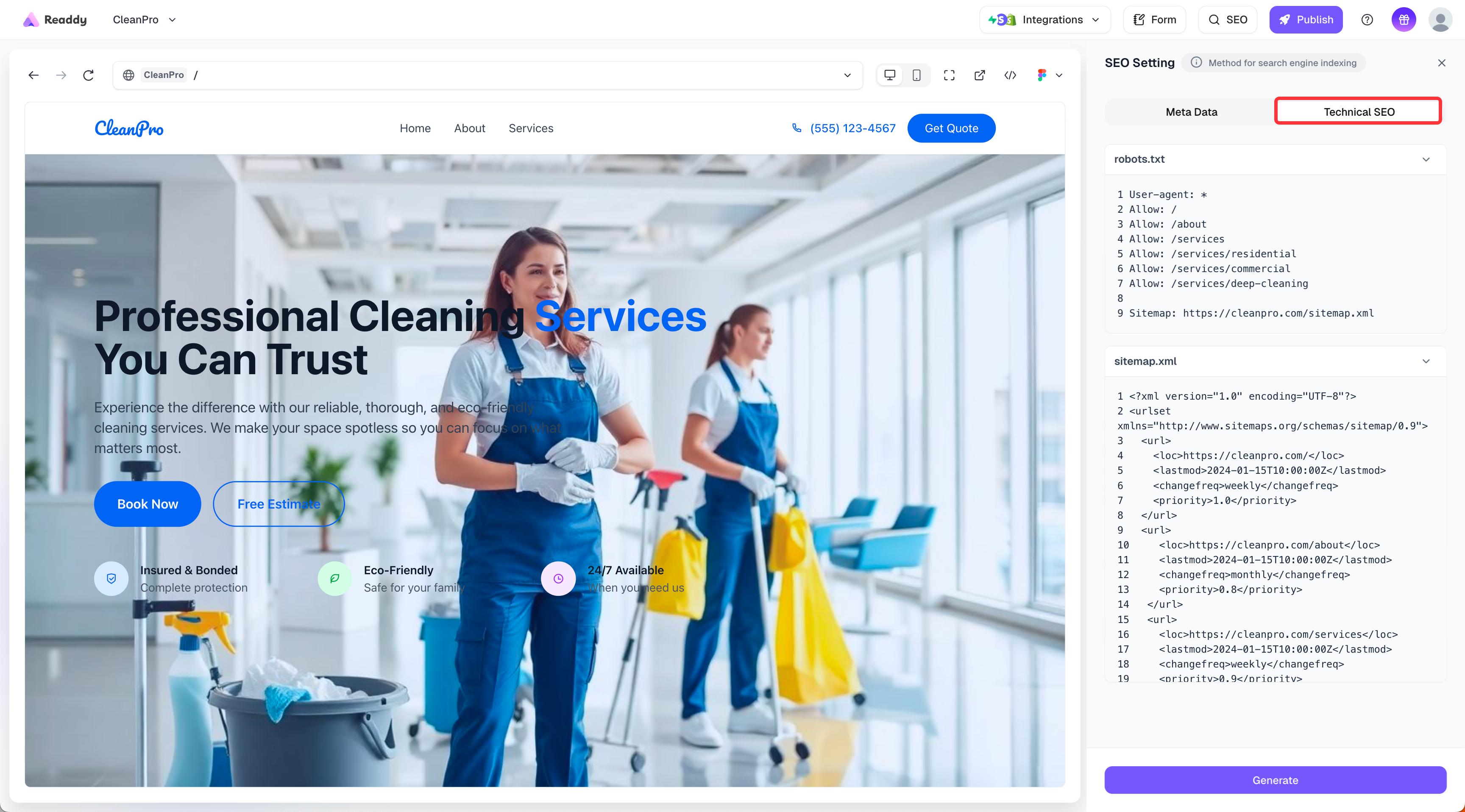- Regenerate after page changes: If you add or delete pages, re‑enter the SEO configuration page, generate again, and then republish the domain to ensure search engines recognize the latest structure.
