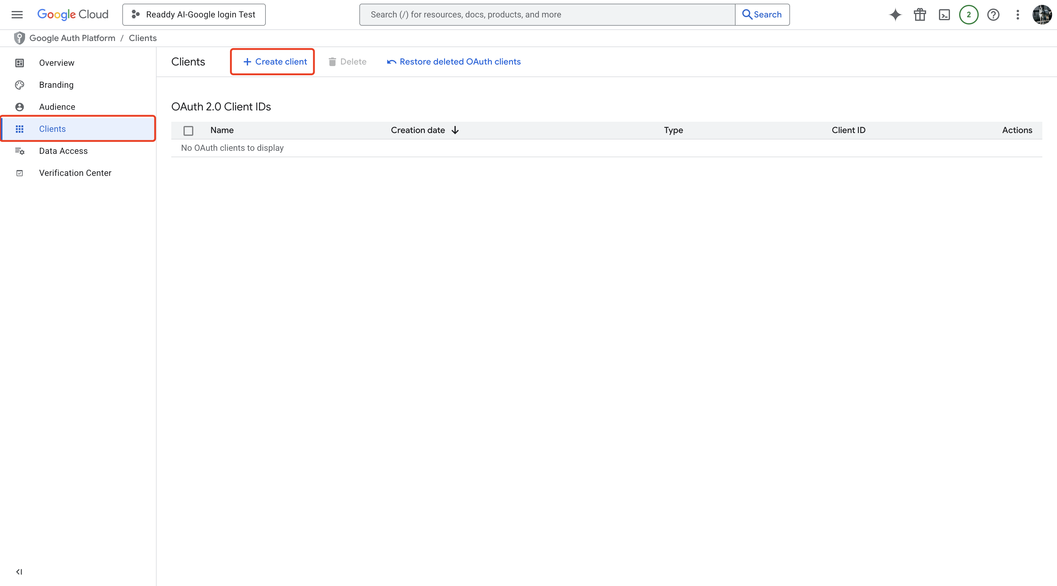 Click Create. Your OAuth client is created—save the Client ID and Client secret.