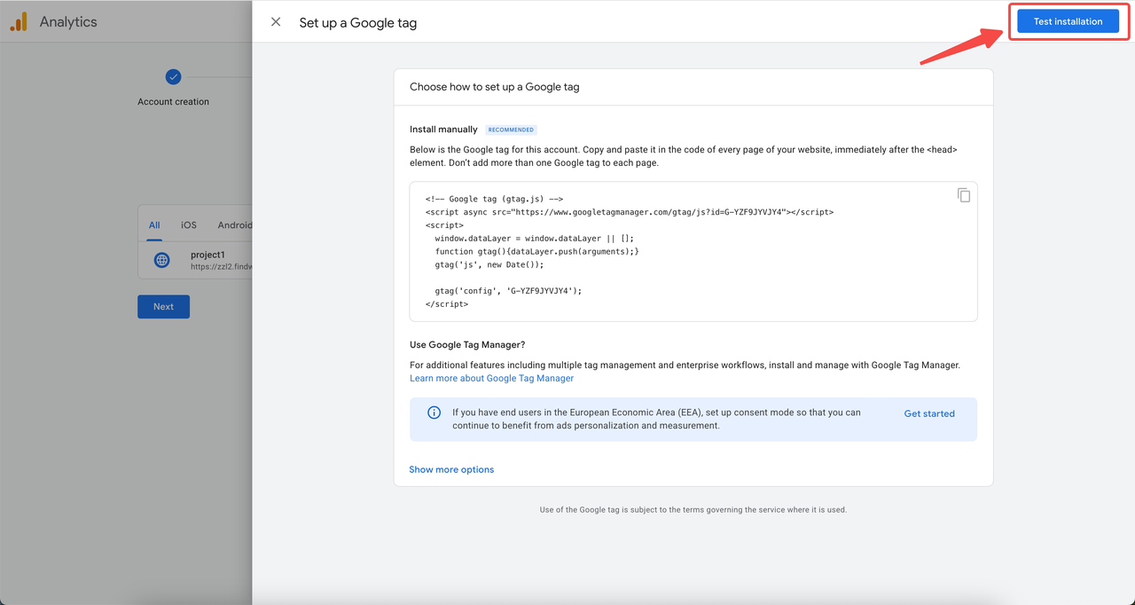- Test installation: Use the “Test installation” feature in Google Analytics