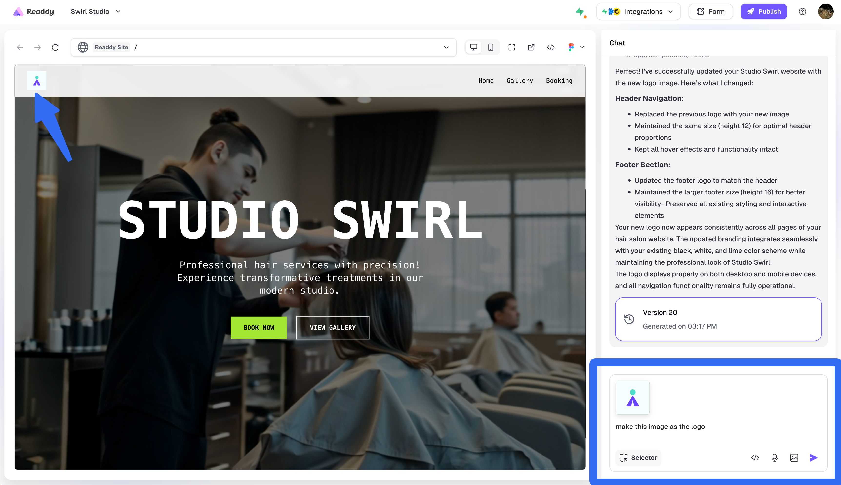 Upload to Readdy in the right bottom corner Chat Box, and tell Readdy: