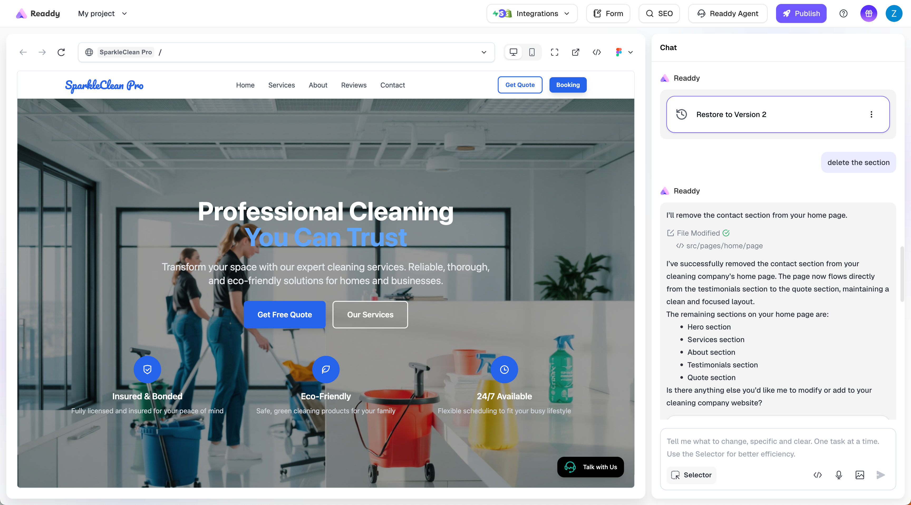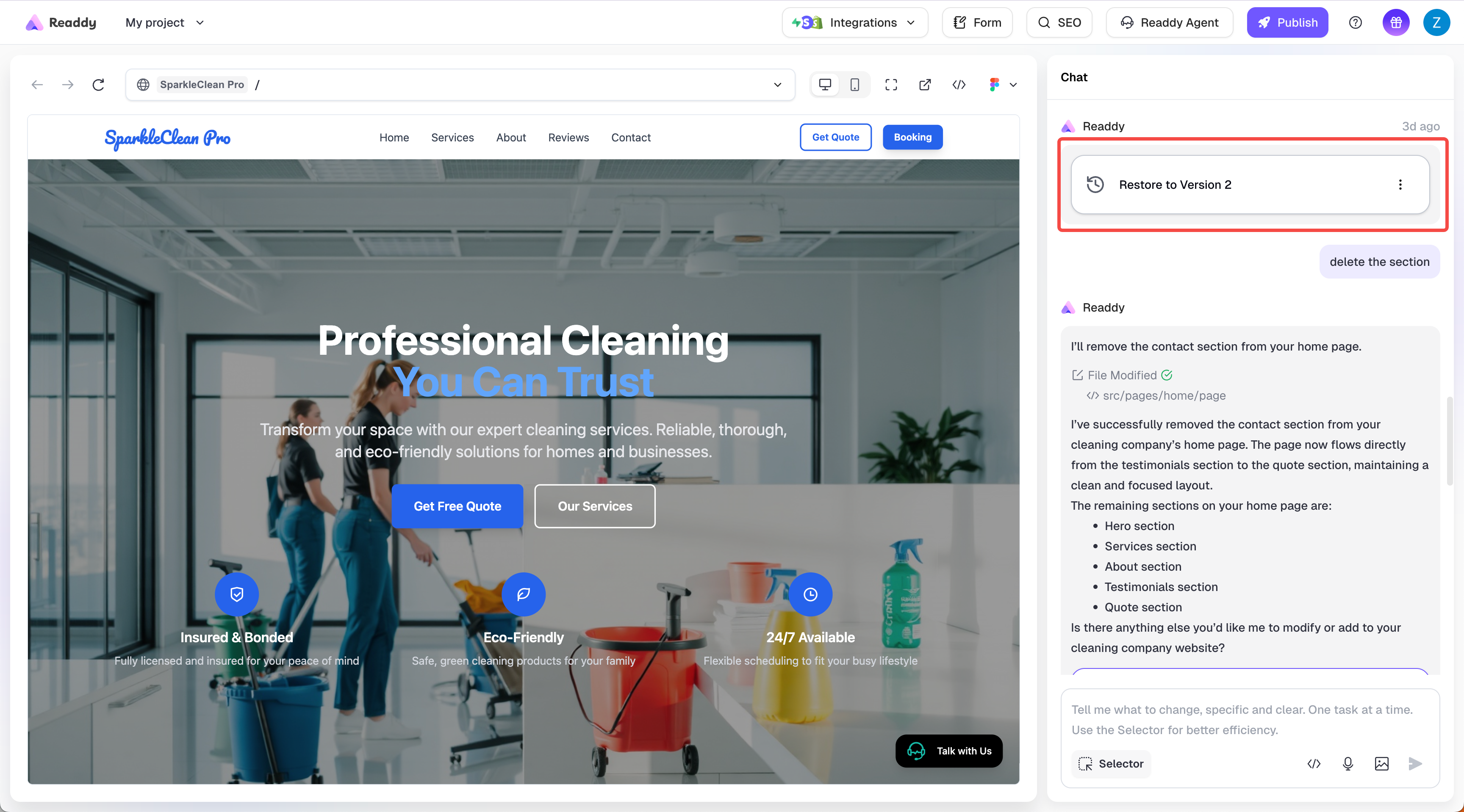 This is the quickest way to restore to a specific version. You can see all your project versions and select the one you want to restore.Method 2: Delete messages from the latest backwards until you reach the original version